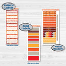 3 washi headers 5.15β x .66β. These are for the Week at a glance page, the page facing the week at a glance and the page after Sunday. When purchased in combination with the Date Covers you will have enough stickers for the top of every page dedicated to the week. 7 checklist strips, 3 habit trackers, 7 day of the week labels, week of, 3 labels and various icons.