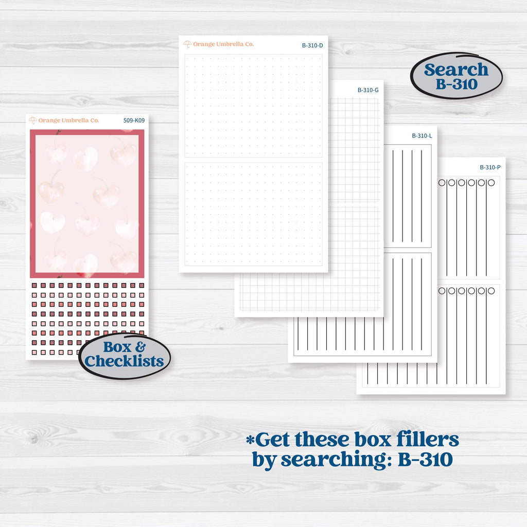 3 Washi Top Headers 6.5β x .75β, 7 date labels, 7 checklist strips, 3 habit trackers, various scripts, icons and labels.