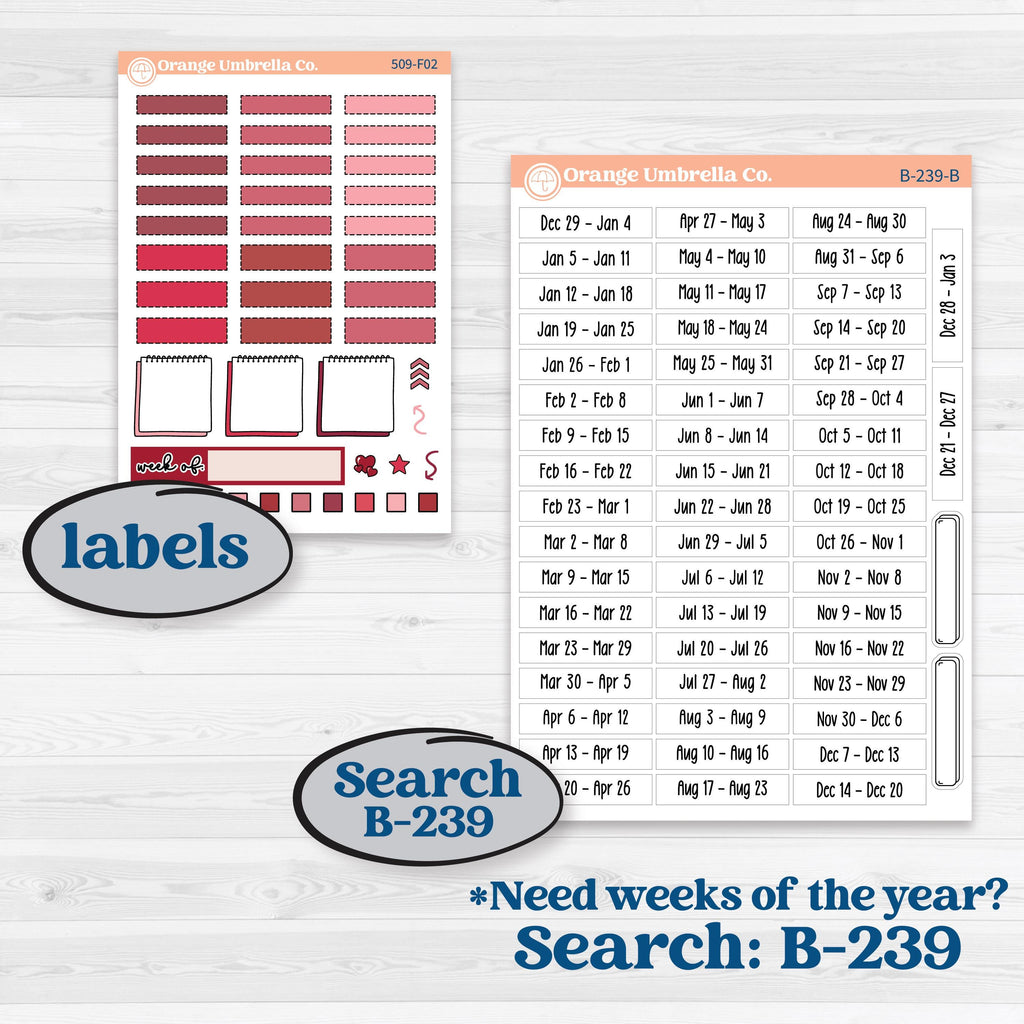 Top washi 3.2β x .35β, bottom washi 3.2β x .78β, date covers 5.8β x .3β, box strips 5.8β x .83β, 3 full boxes .83β x .83β, various labels .94β wide, scripts and icons in various sizes