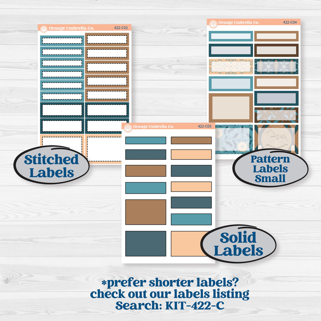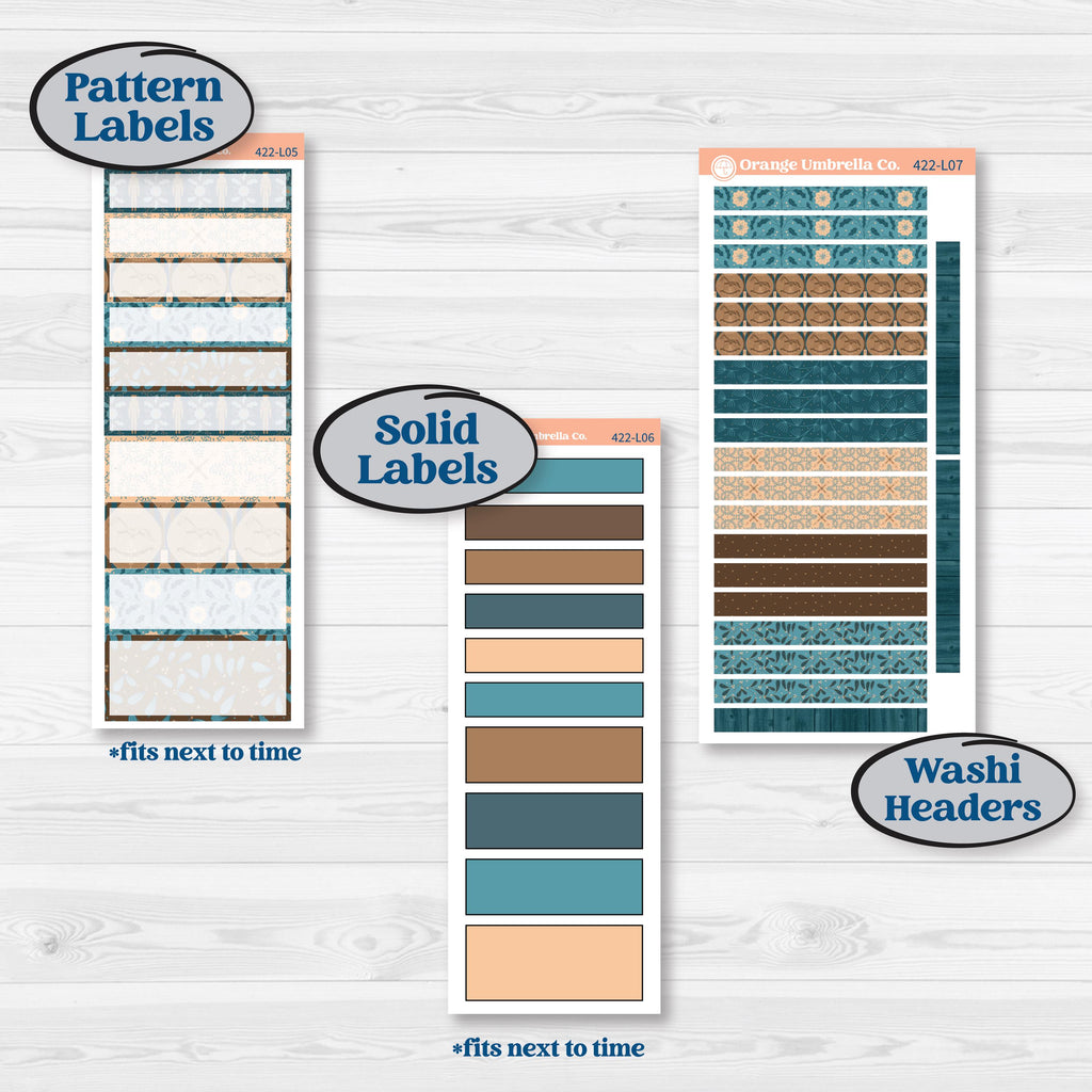 3 washi headers 5.15β x .66β. These are for the Week at a glance page, the page facing the week at a glance and the page after Sunday. When purchased in combination with the Date Covers you will have enough stickers for the top of every page dedicated to the week. 7 checklist strips, 3 habit trackers, 7 day of the week labels, week of, 3 labels and various icons.