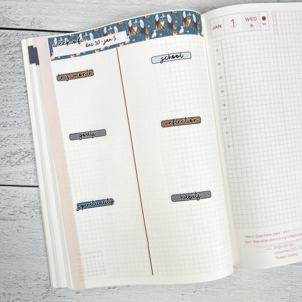 I don't know about you but I think best when things are neatly organized into separate categories. I enjoy tracking my hobbies, and health & wellness, and I wanted a space to keep it all together. If you're seeking a weekly overview or a detailed list--or both-- the freestyle kit could be a great fit for you. All size dimensions are provided below. While these weren't design for any specific planner, I've successfully used them in both 7x9 EC notebooks and my compact A5 carry-all notebooks.