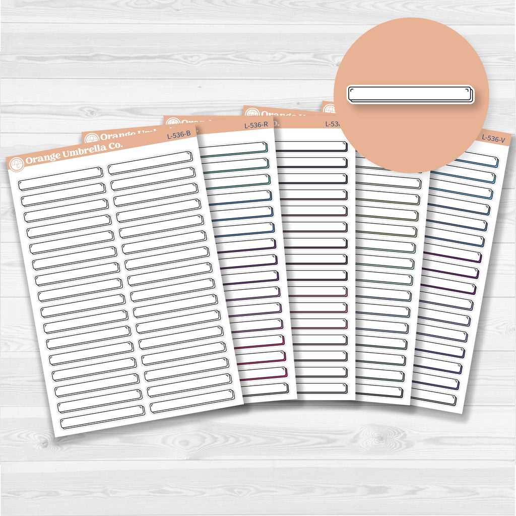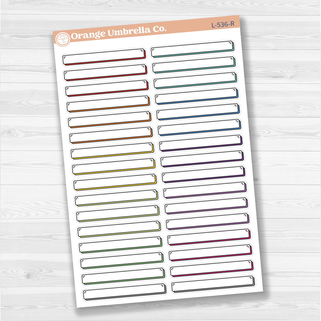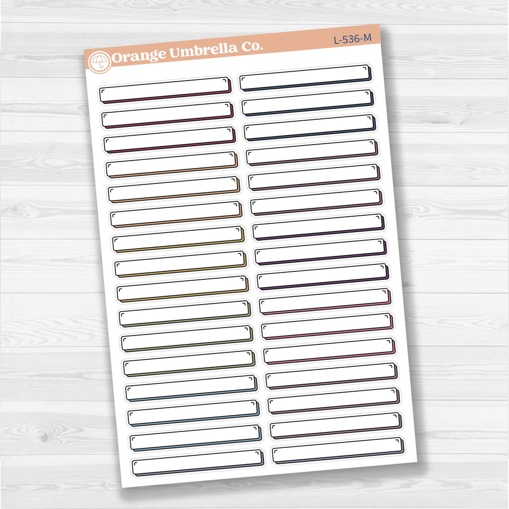 🏷️Add structured style to your planning with these wide label stickers! Sized perfectly for lists, headers, and callouts, they’re a clean and versatile option for journals, planners, and project pages. Use them for categories, reminders, or highlighting key tasks. Each sheet features simple outlined rectangles with rounded edges in your choice of black or subtle rainbow tones.