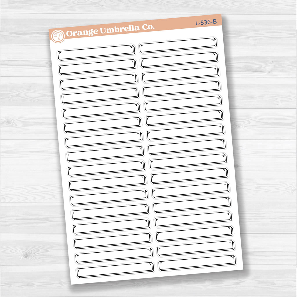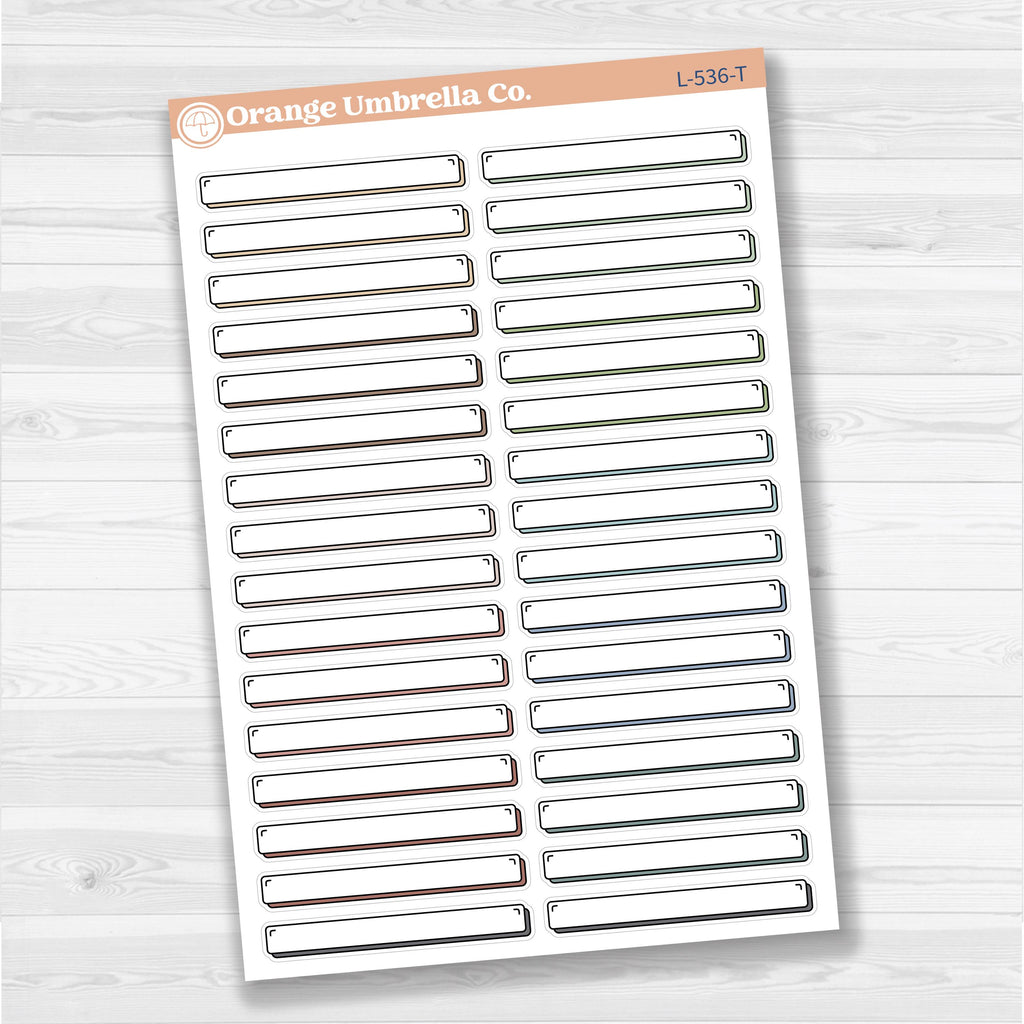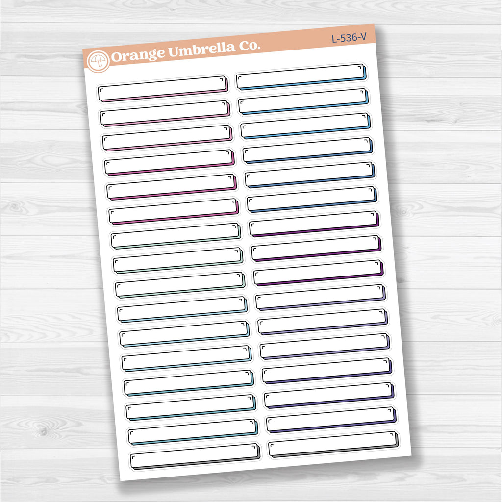 🏷️Add structured style to your planning with these wide label stickers! Sized perfectly for lists, headers, and callouts, they’re a clean and versatile option for journals, planners, and project pages. Use them for categories, reminders, or highlighting key tasks. Each sheet features simple outlined rectangles with rounded edges in your choice of black or subtle rainbow tones.