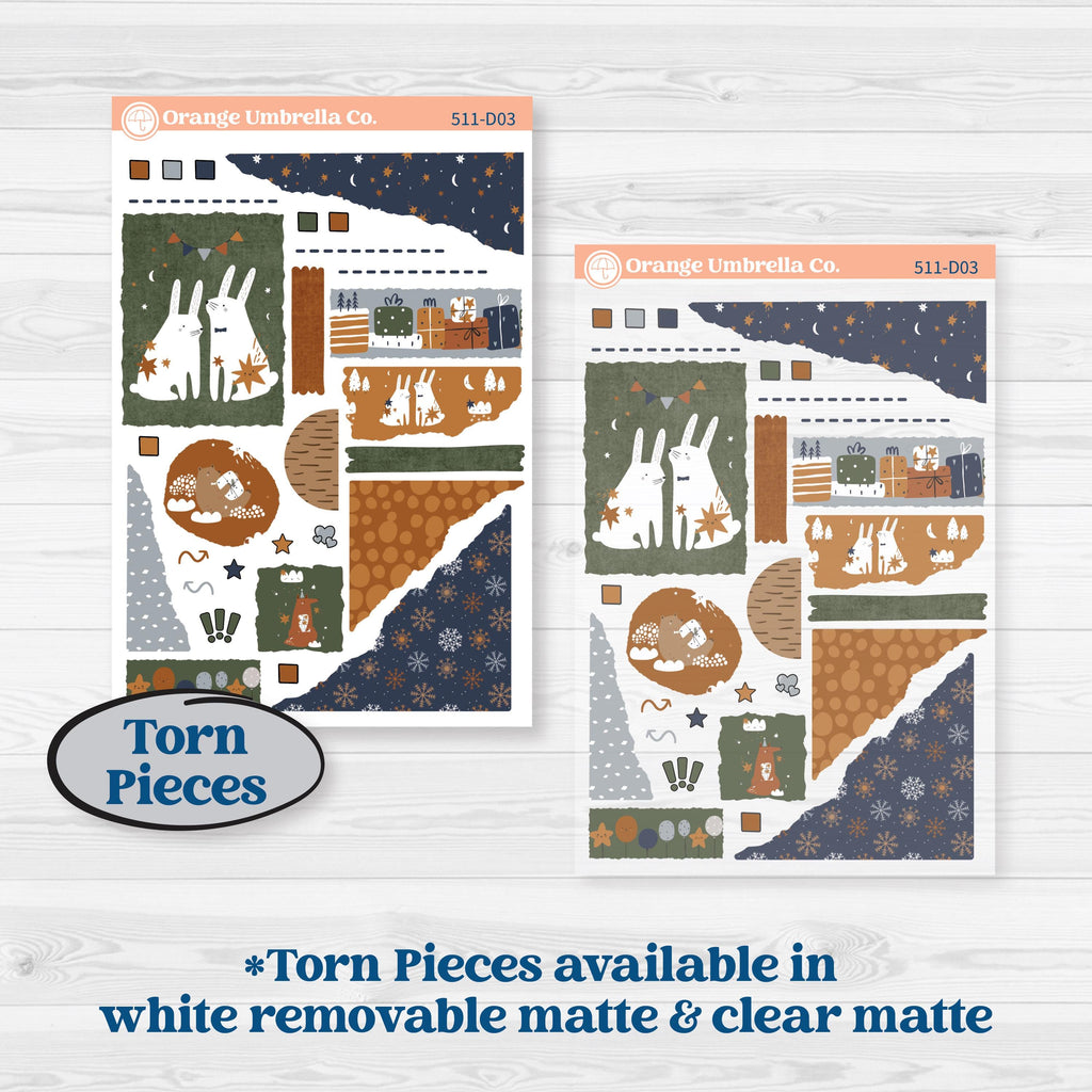 Two large torn washi 6.4β x .77β, 7 small labels 1.4β x .38β, 3 large labels 1.4β x .57β, days of the week 1.28β x .36β, torn corner 2.9β x .93β, various doo dads