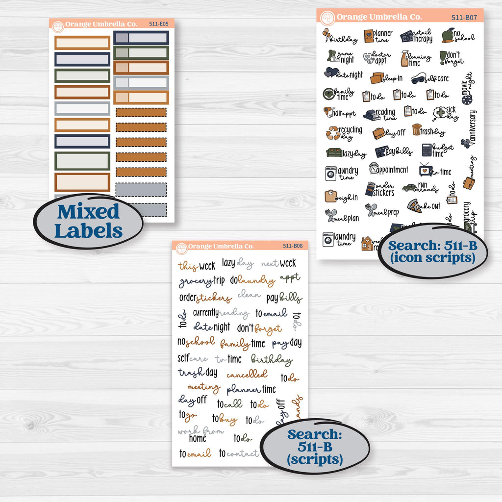 7 Washi Headers 5.25” x .7”, Days of the week max 1”, various checklists & scripts