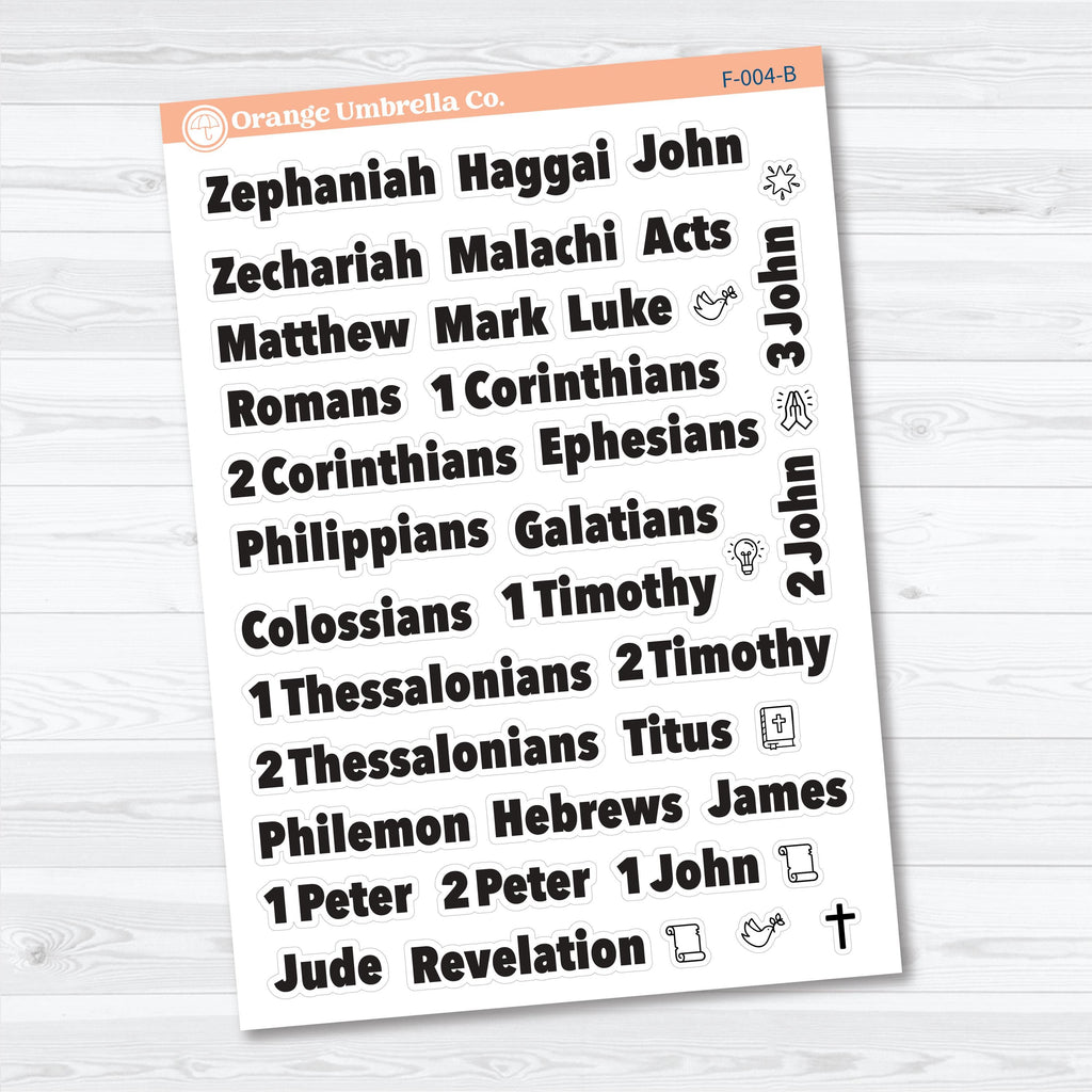 🌸 Complete your Bible journaling set with the Zephaniah through Revelation Books of the Bible stickers! This sheet includes 31 books plus matching icons — perfect for labeling study pages, sermon notebooks, or devotional spreads in your faith planner.
